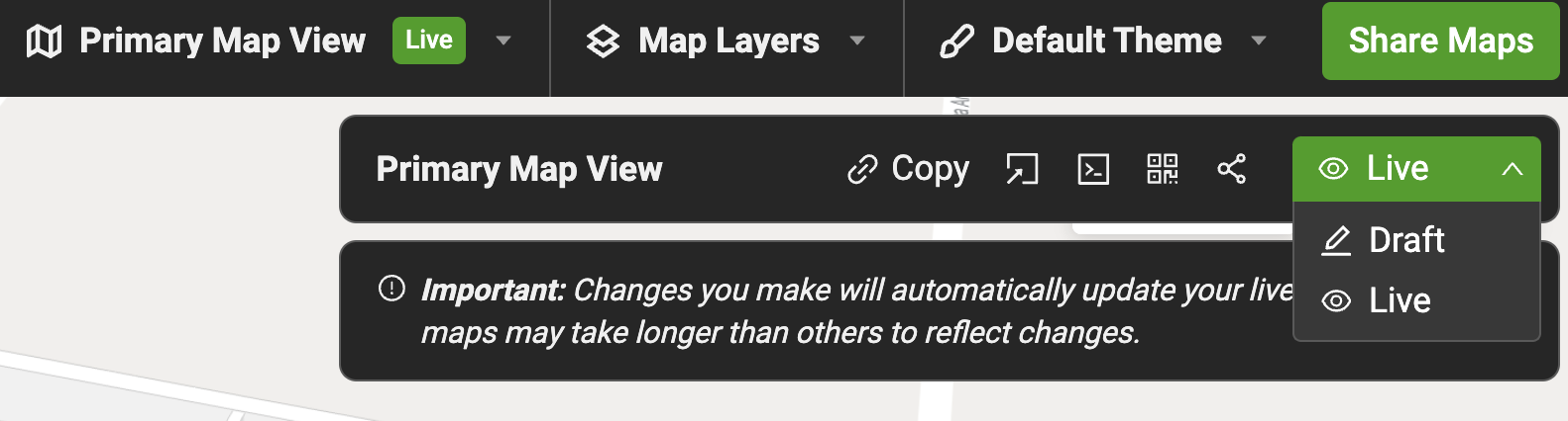 - Remember to set the map to Live. To do so click on the